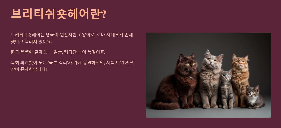 브리티쉬숏헤어는 영국이 원산지인 고양이로, 로마 시대부터 존재했다고 알려져 있어요.