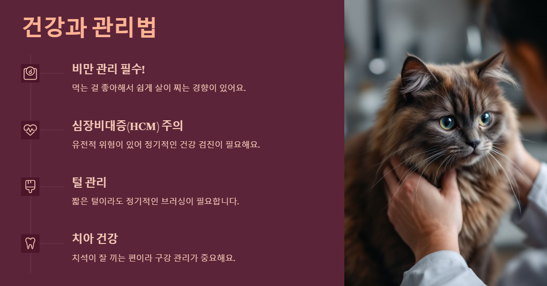 2. 심장비대증(HCM) 유전적 위험 → 정기적인 건강 검진이 필요해요.