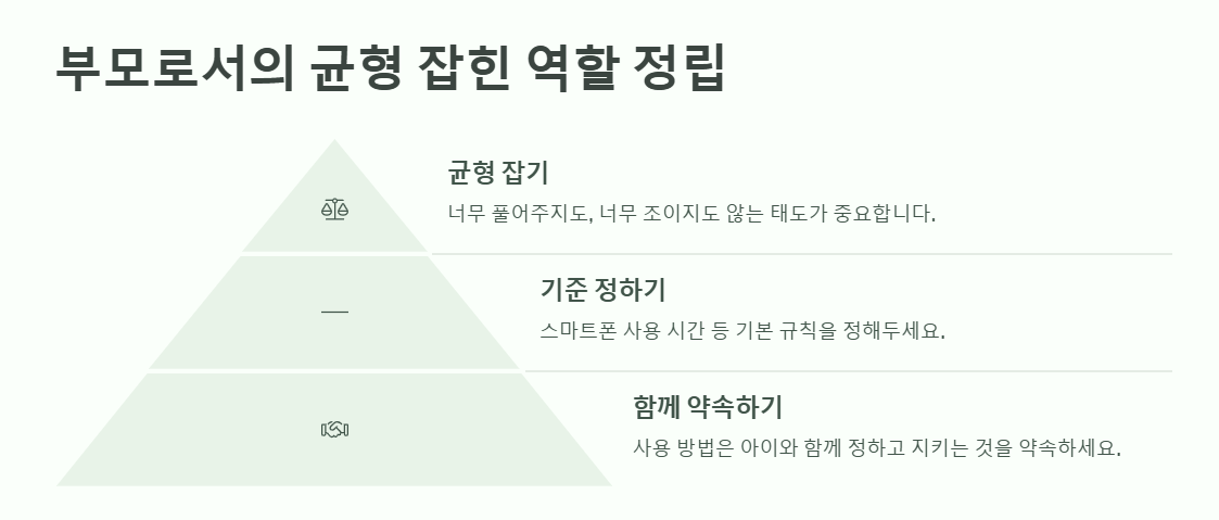 예를 들면, 스마트폰 사용 시간은 정해두되 사용 방법은 아이와 함께 정하고, 지키는 것은 함께 약속하는 방식으로요. 훈육과 이해 사이에서 균형 잡힌 태도가 아이와의 신뢰를 쌓는 데 큰 힘이 됩니다 ⚖️