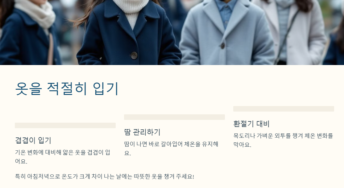 ✔ 환절기에는 목도리나 가벼운 외투 챙기기