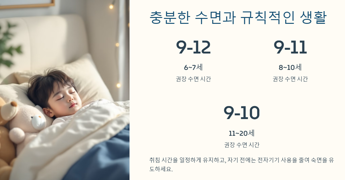 취침 시간을 일정하게 유지하고, 자기 전에는 전자기기 사용을 줄여 숙면을 유도하세요.