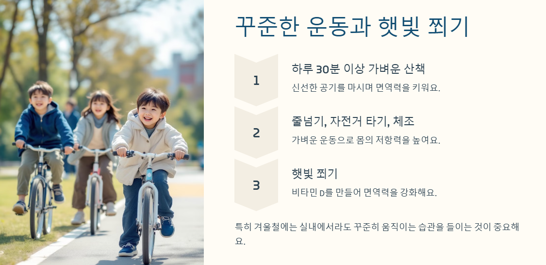 운동을 하면 면역력이 강해지고 감기 예방에도 좋아요!