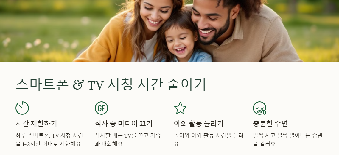 ✔ 하루 스마트폰, TV 시청 시간 1~2시간 이내로 제한