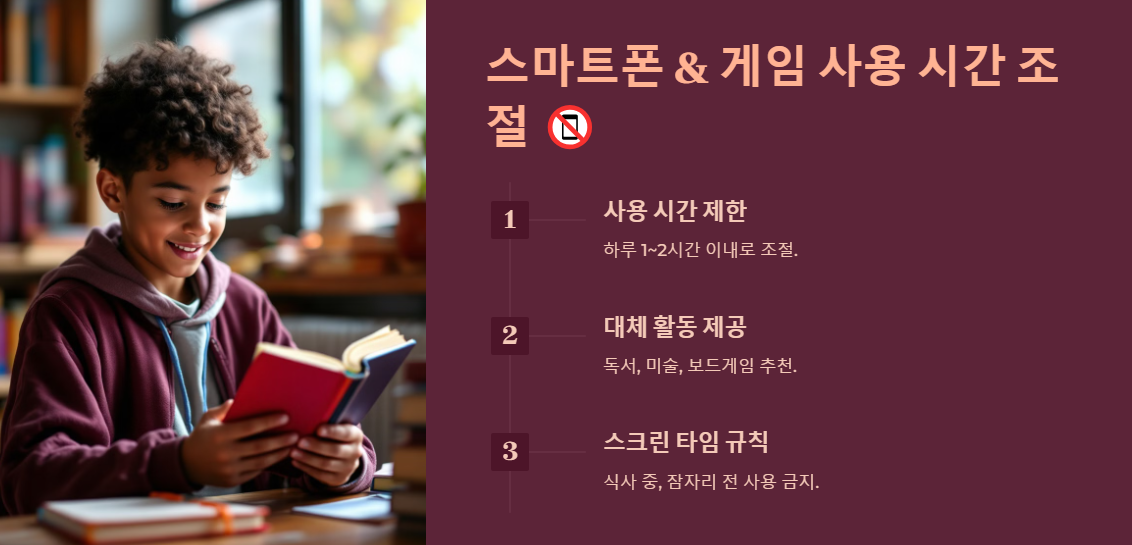 ⏰ 스크린 타임 규칙 정하기 – 식사 중, 잠자리 전 스마트폰 사용 금지