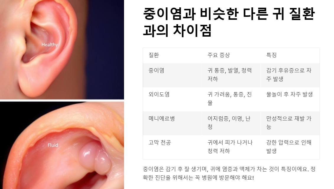 - 중이염과 비슷한 다른 귀 질환과의 차이점