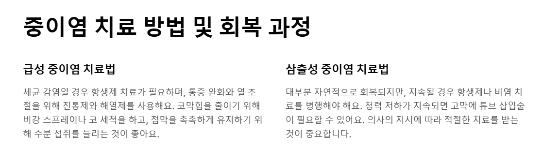 ## 중이염 치료 방법 및 회복 과정